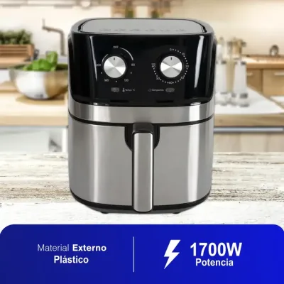 La capacidad de 6.3 litros de esta freidora es perfecta para preparar grandes cantidades de alimentos, ideal para familias numerosas o reuniones con amigos. Su tamaño permite cocinar una variedad de platillos, desde papas fritas hasta pollos enteros, en una sola tanda, ahorrando tiempo y esfuerzo en la cocina.