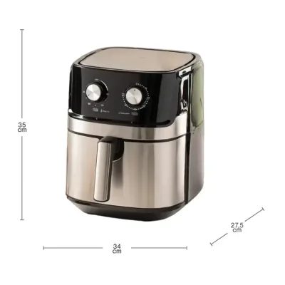 Con un diseño elegante y acabado en colores neutros, esta freidora se integra perfectamente en cualquier estilo de cocina. A pesar de su gran capacidad, su estructura compacta optimiza el espacio en tu encimera.